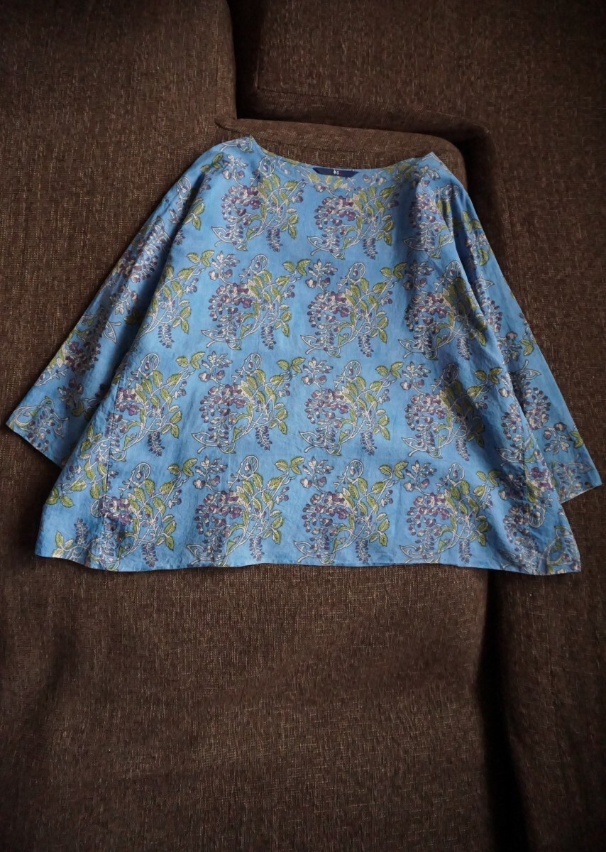 - ★涼やかさを感じる水彩画の様な佇まい◎手紬ぎ手織りカディのシャツ ブラウス★45rpm 45R 即決 チュニック