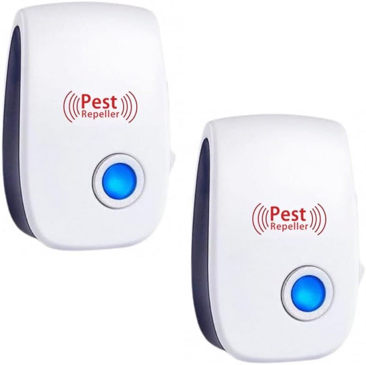 - 超音波式害虫駆除機 鼠/ゴキブリ/蚊/蟻/蜘蛛などに対応 アニマルバリア 害獣退治 駆除コンセント式 虫除け器 省エネ 環境に優しい 2個入り