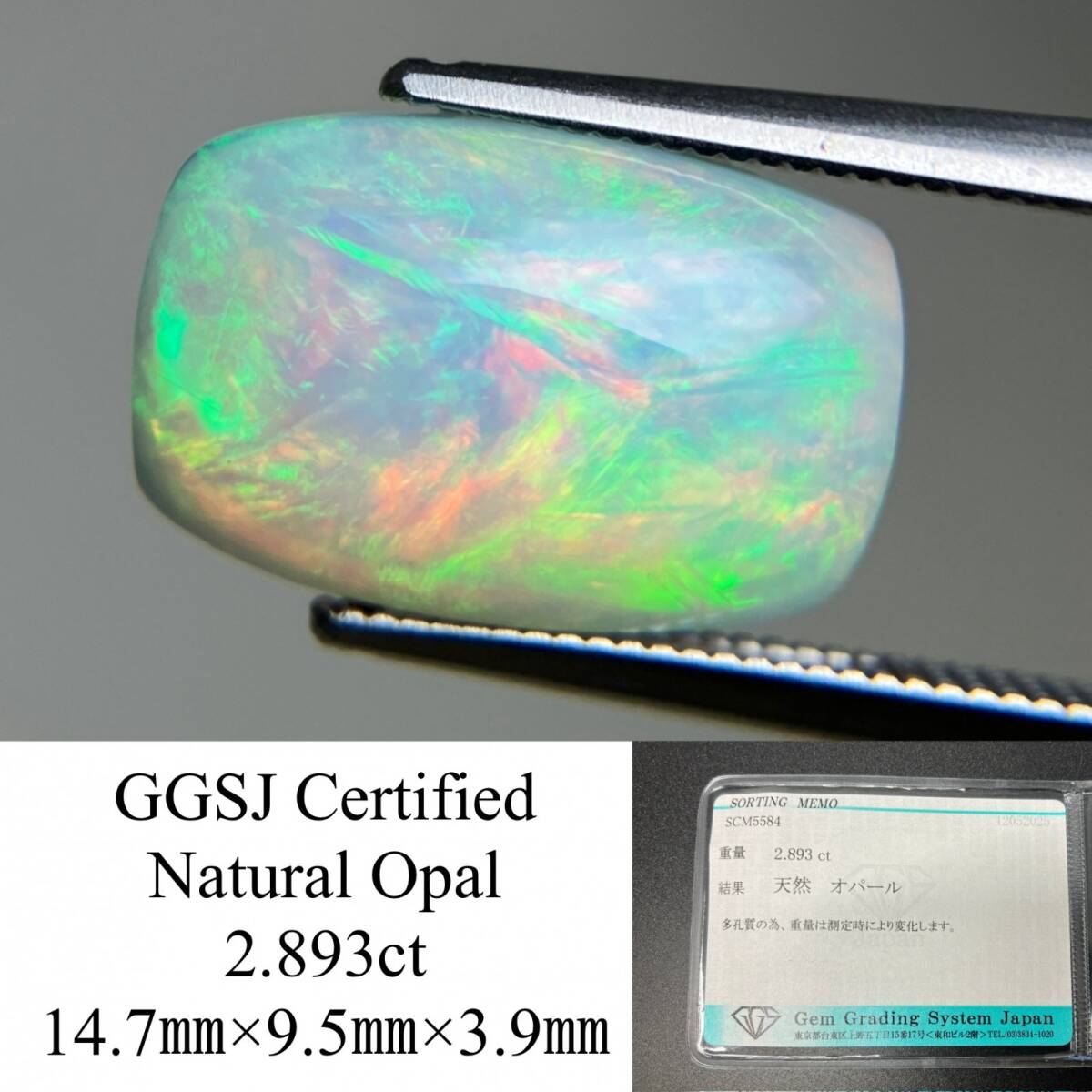 > オパール 天然 2.893ct 宝石ソーティング付き 14.7×9.5×3.9 ラッピング無料 ルース( 裸石 ) 5171YY