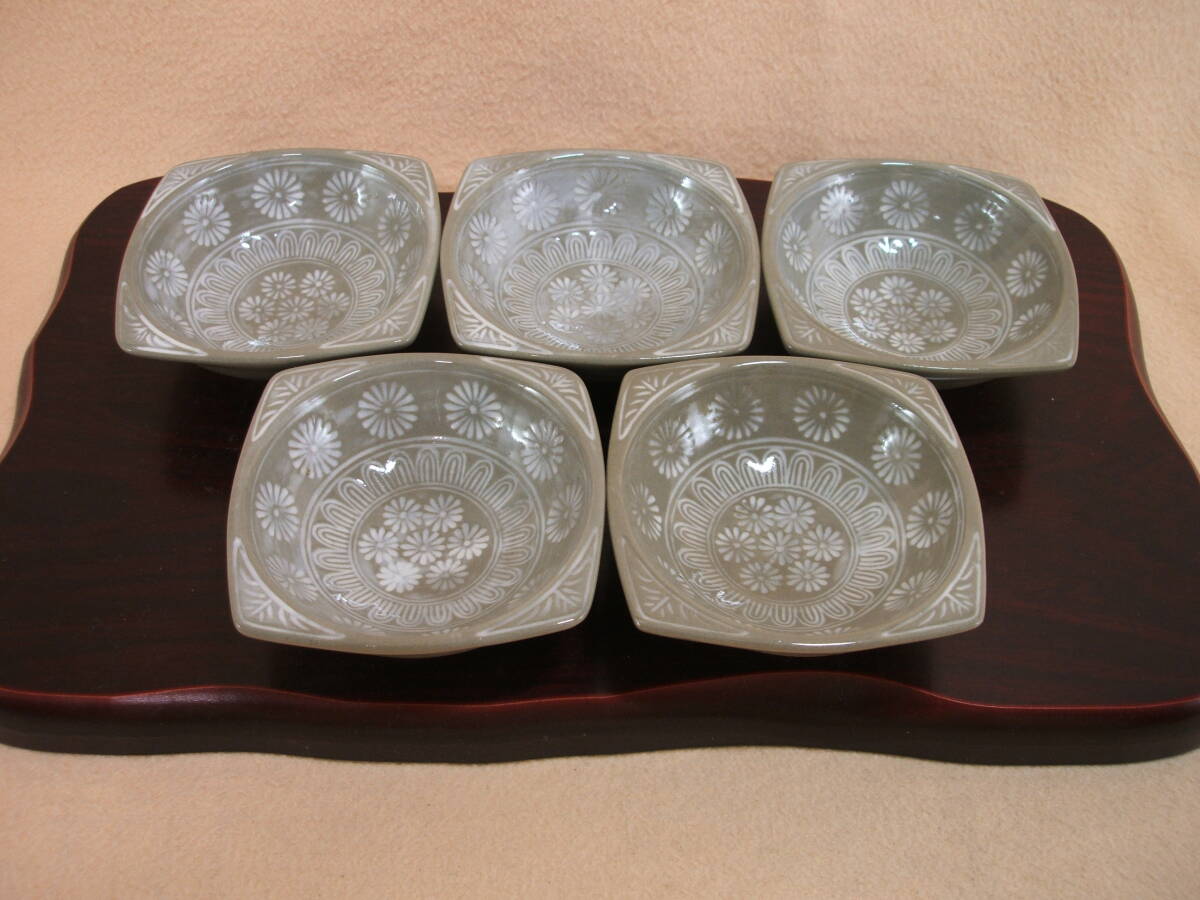 - 銀峯 花三島 一口ヤクミ入れ 5個 未使用 ヤクミ皿 薬味入れ 刻みネギ もみじおろし ゆず胡椒 ざるそば しゃぶしゃぶ うどんすき 寄せ鍋