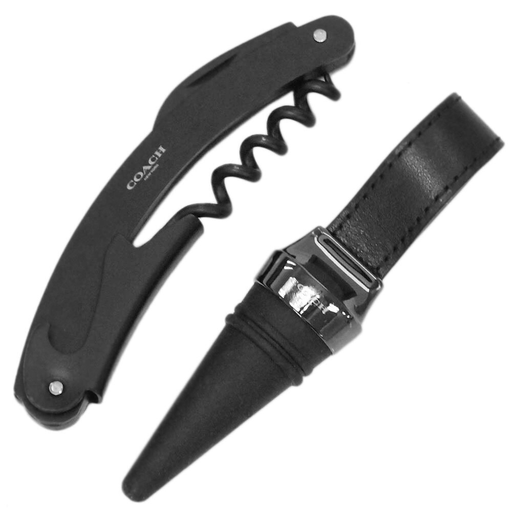 - 未使用 コーチ ボトル栓 F38010-QBNI9 COACH ワイン オープナー ストッパー セット ウィズ スクリプト プラッド ミッドナイト ネイビー