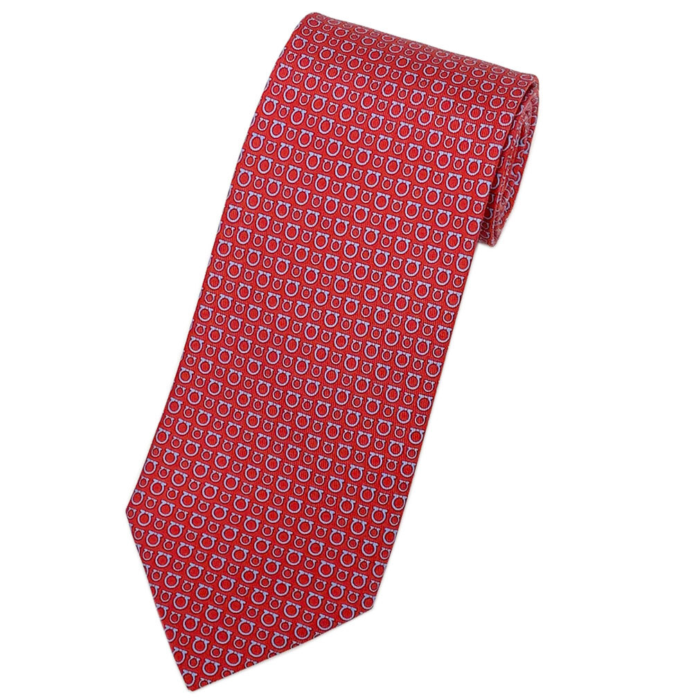 - 未使用 フェラガモ ブランド ネクタイ サルヴァトーレ・フェラガモ シルク 100% ガンチーニ レッド ブルー 赤 41209