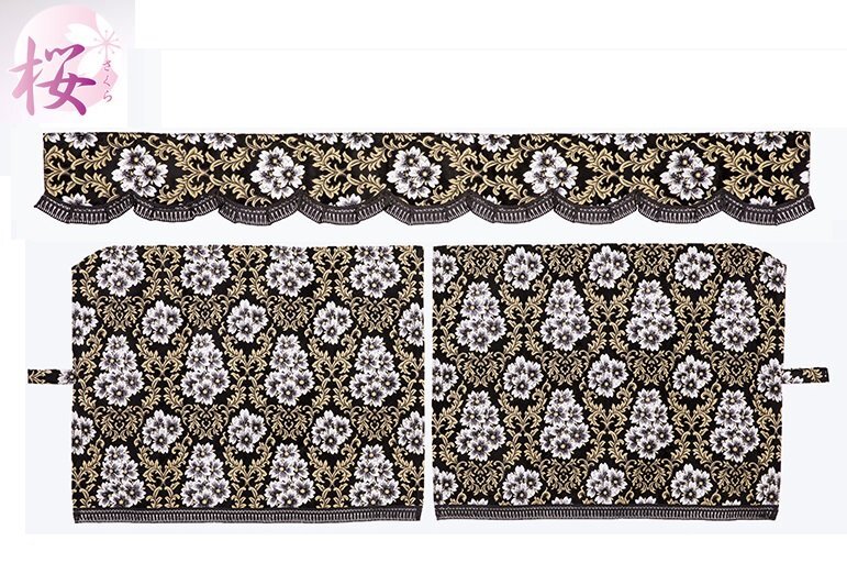 > トラック用品 金華山 桜 さくら 三点式センターカーテン M寸(1300×950)ブラック/日野 いすゞ ふそう UD 中型 4t【送料800円】