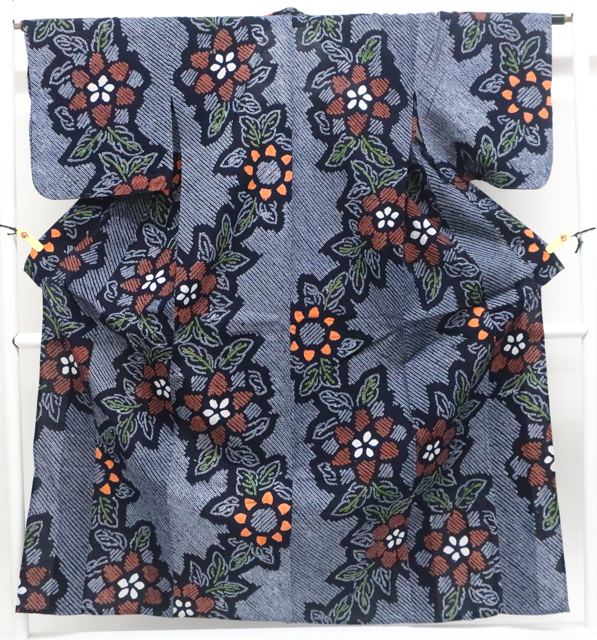 - 《古美術京松》【着物】 浴衣 昭和レトロ 有松絞り 花柄 身丈約160cm 裄丈約66.5cm r7z05-502