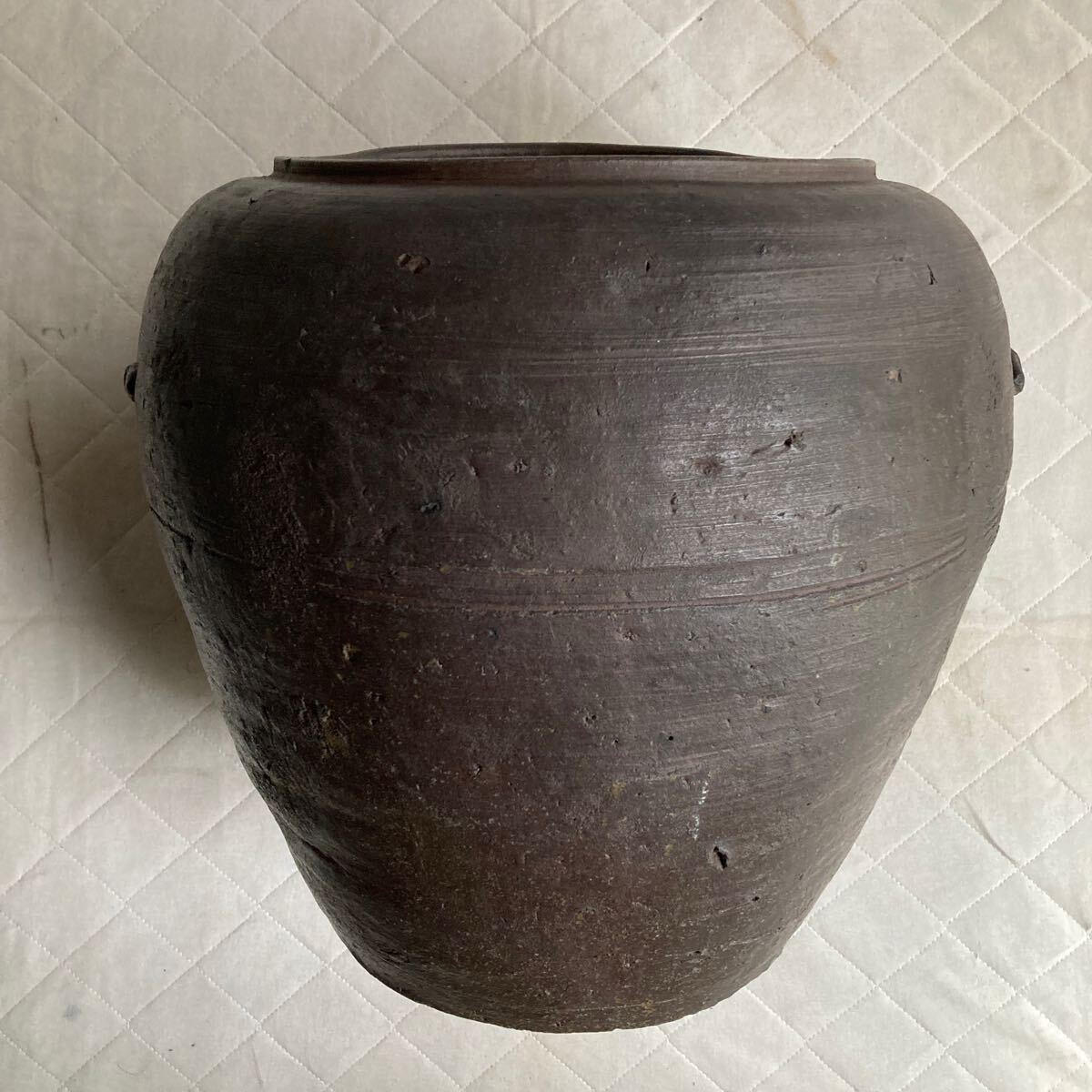 - 室町時代.桃山時代初期頃.古美術品古備前.壺.大壺.甕.直線文有り.耳付き.景色は大変宜しいです.水漏れ無し.完品です.重さ.約11.6kgです。
