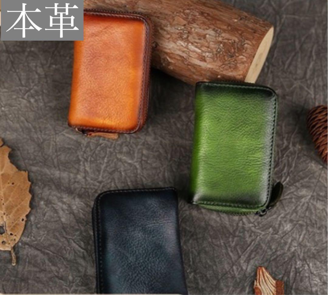 - コンパクト財布 本革 カードケース アンティーク調デザイン メンズ レディース