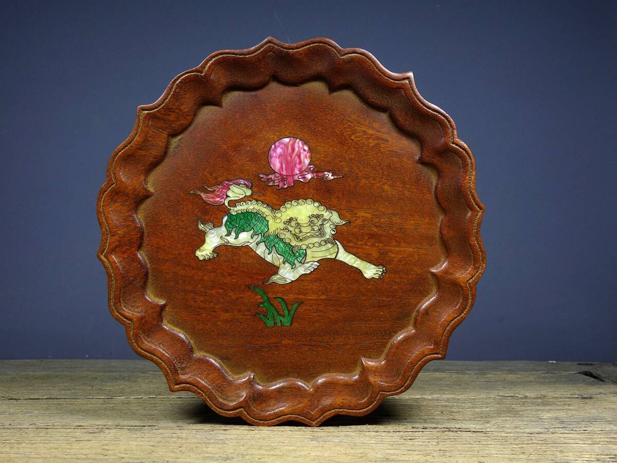 - 【古寶奇蔵】花梨木製・細密彫・貝殼嵌・彩繪・事事如意紋・茶盤・置物・賞物・古董品・中国古玩・時代物・希少珍品・中国時代美術