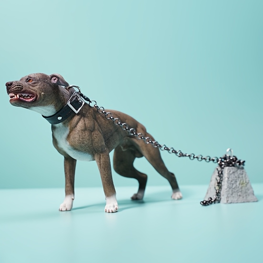 > ミニチュア 置物 ピッドブル 茶色 イヌ ブラウン リアル 21.5cm 鎖 石 いぬ 樹脂像 インテリア 犬 動物 アニマル フィギュア t6609