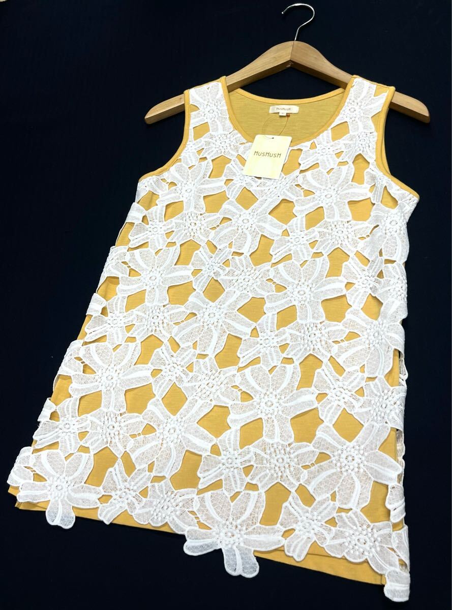 - HusHusH★ハッシュアッシュ★(M)フロントフラワーレース重ね ノースリーブ トップス/イエロー系 未使用
