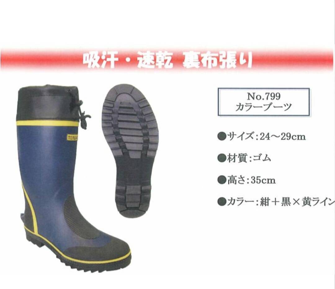 > 4228 富士手袋 799|長靴 24.5㎝|紺|カバー付き|先芯無|新品未使用|レインブーツ|カラーブーツ|釣り通学農業林業漁業清掃ガーデニング