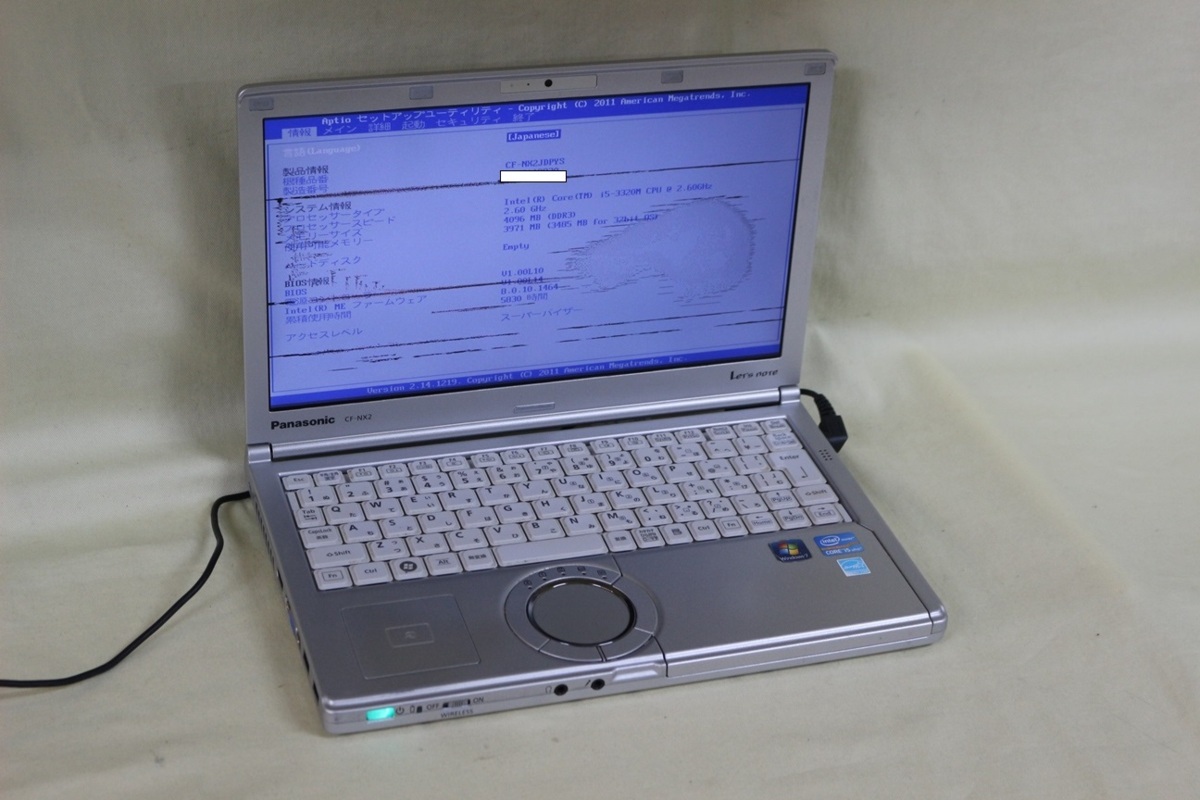 - ジャンク品ノートパソコン Panasonic Let's note CF-NX2 COREi5 メモリ4GB HDD無 12.1inchワイド カメラ内蔵 起動確認済 代引き可
