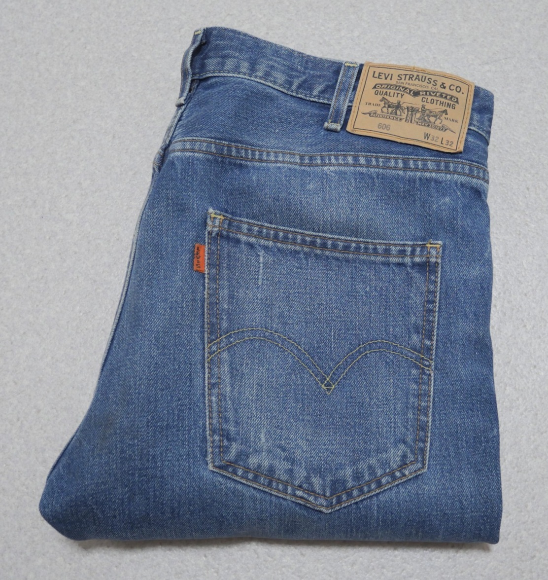 > トルコ製 LEVI'S LVC 606 BIG E ダメージ加工 スリム デニムパンツ 青 W32 ジッパーフライ リーバイス 30605-0054