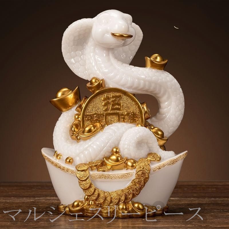 - 風水 白蛇 置物 へび 弁財天 しろへび 龍の化身 白龍十二支 巳 干支 金運 開運 グッズ アイテム 縁起物 シロヘビの置物 財運 繁栄 生命力
