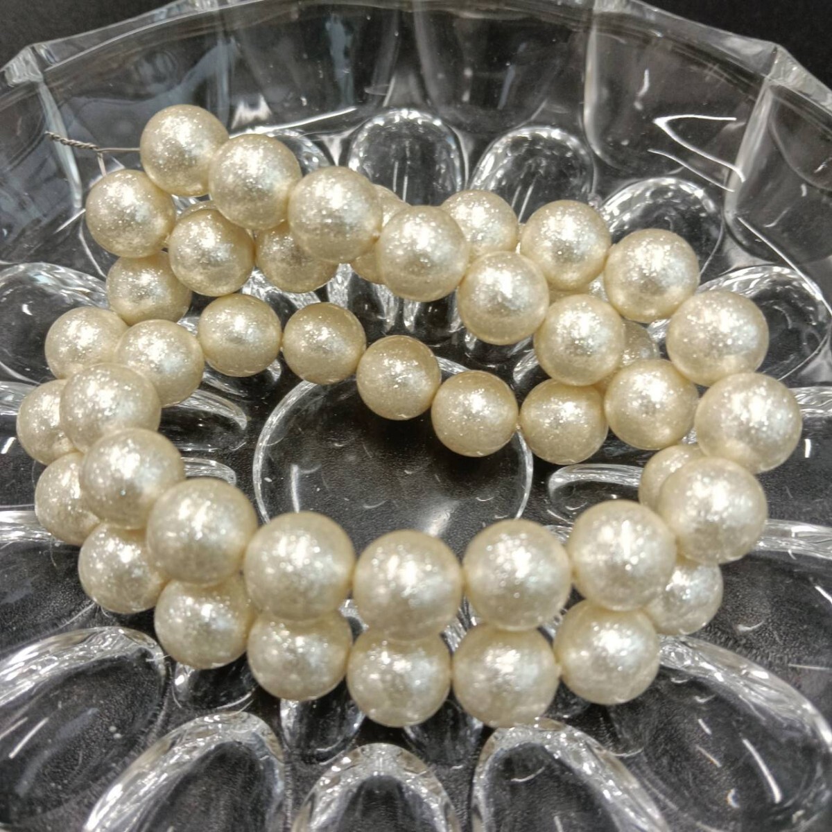 > ☆未使用 大量 パール ビーズ フェイク ラメ入り ラウンド 約48g 11mm ホワイト ヴィンテージ ハンドメイド アクセ S-83