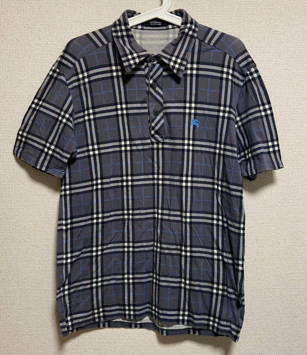 - サイズ3 バーバリーブラックレーベル ホースマーク刺繍 ストレッチ チェック ポロシャツ 灰 BURBERRY BLACK LABEL