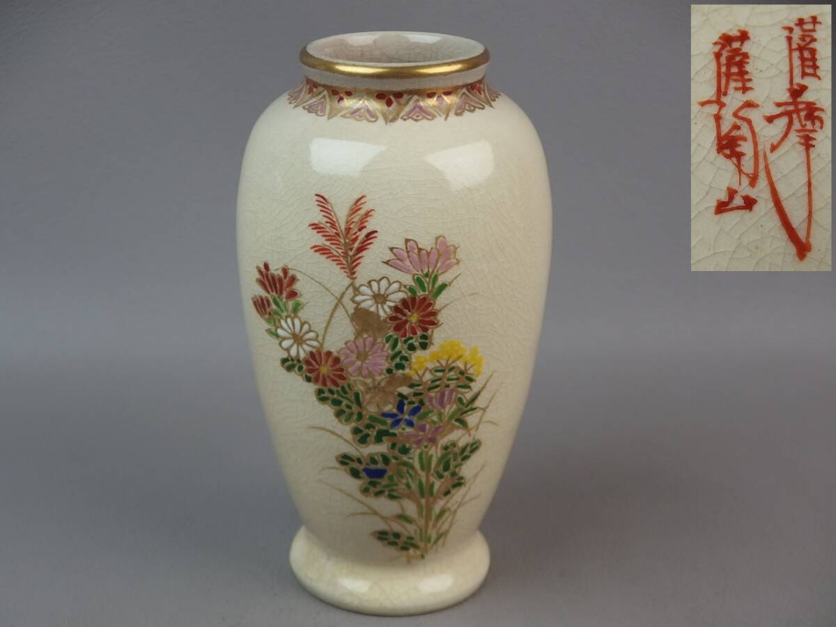 - 【骨董・茶道具】★薩摩焼 薩陶山★★金彩花文花瓶② gj083tb22.7 花道 華道
