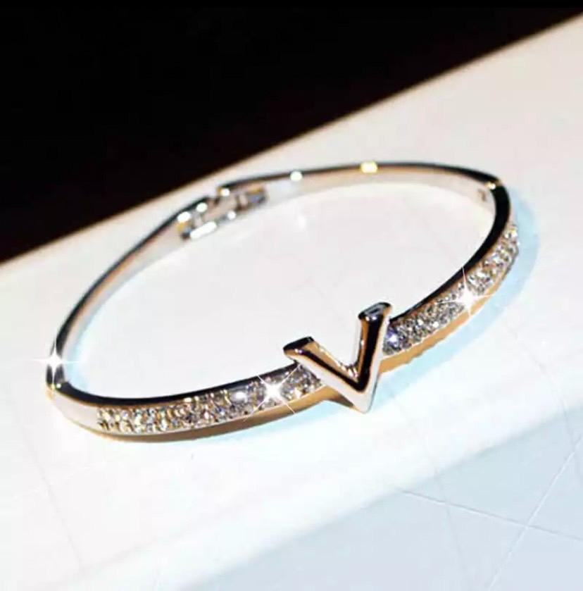 > 353★新品未使用★レディース シルバー V ブレスレット バングル czダイヤモンド 韓国 ジルコニア 韓国 ジュエリー アクセサリー ストーン