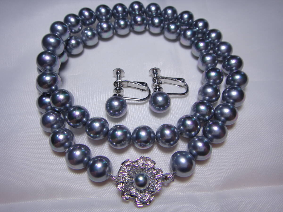 - 高級貝パール ネックレス&イヤリングセット 約8㎜玉 約43㎝ 未使用品 ヴィンテージ セレモニーやお出かけなどに C268