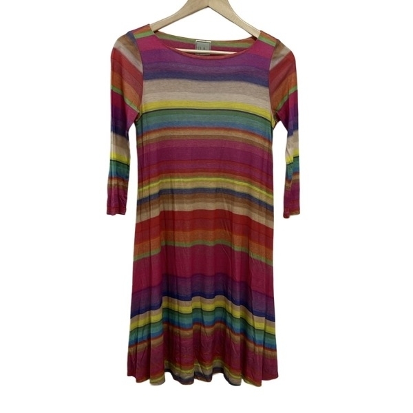 > シビラ Sybilla サイズM - ピンク×マルチ レディース クルーネック/七分袖/ひざ丈/ボーダー ワンピース
