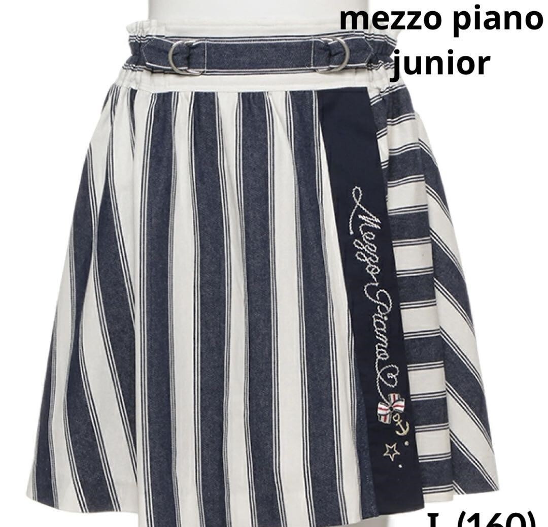> ★美品★メゾピアノジュニア★デニム★爽やかで可愛い★マリン★100%棉★スカート★サイズS140★ウェストゴム調整可能★