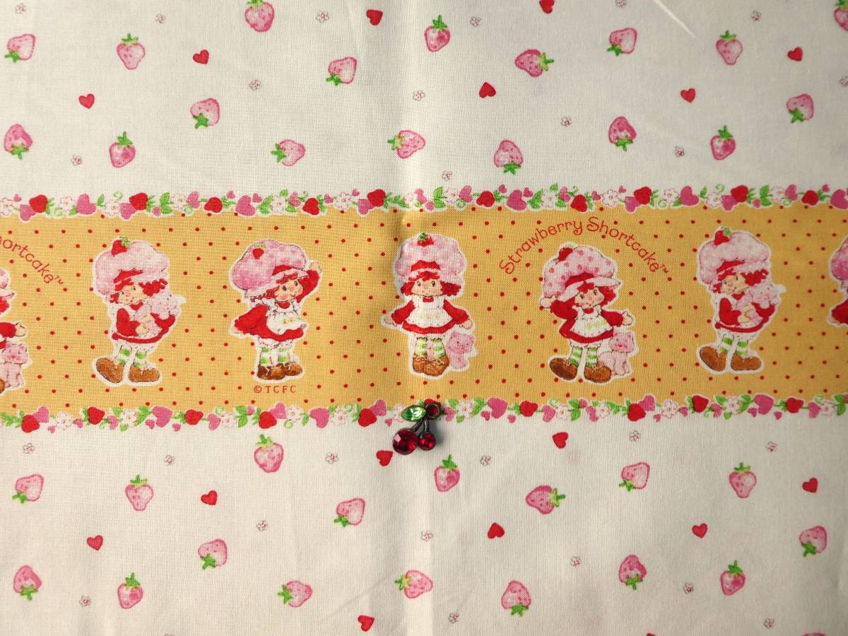 - 即決★レア ストロベリーショートケーキいちご柄生地生成りイエロー★レトロ昭和女の子カントリー