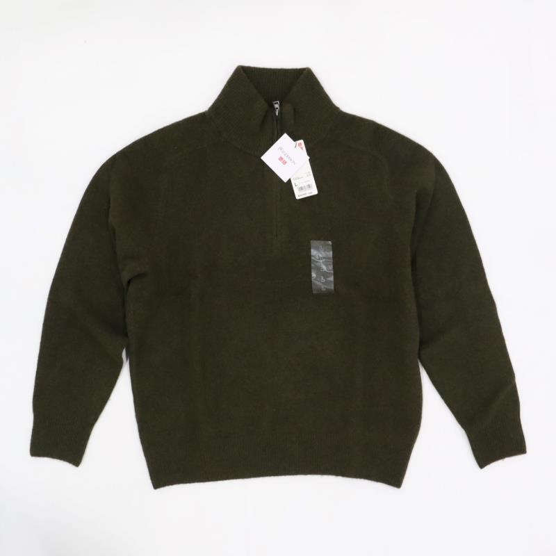 > 【未使用、タグ付き】ユニクロ and JWアンダーソン スフレヤーンハーフジップセーター ダークグリーン Lサイズ