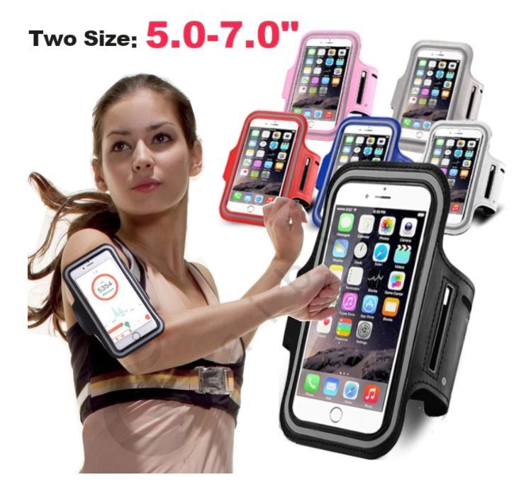 - L ブラック ランニング アームバンド スマホ スポーツ アームポーチ 7インチ 送料無料