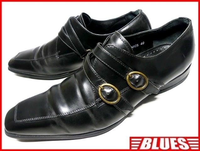 - 即決★VISARUNO★25cm レザーダブルモンクストラップシューズ ビサルノ メンズ 40 黒 ブラック 本革 ドレス 本皮 ヒール 革靴 ビジネス