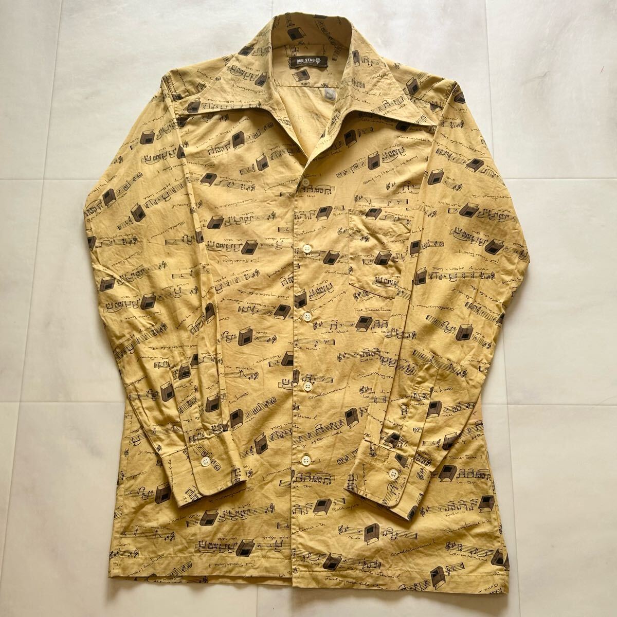 - 70s BUB STAG 総柄 柄シャツ 開襟 オープンカラー 音楽 音符 レトロ アート ビンテージ 長袖シャツ