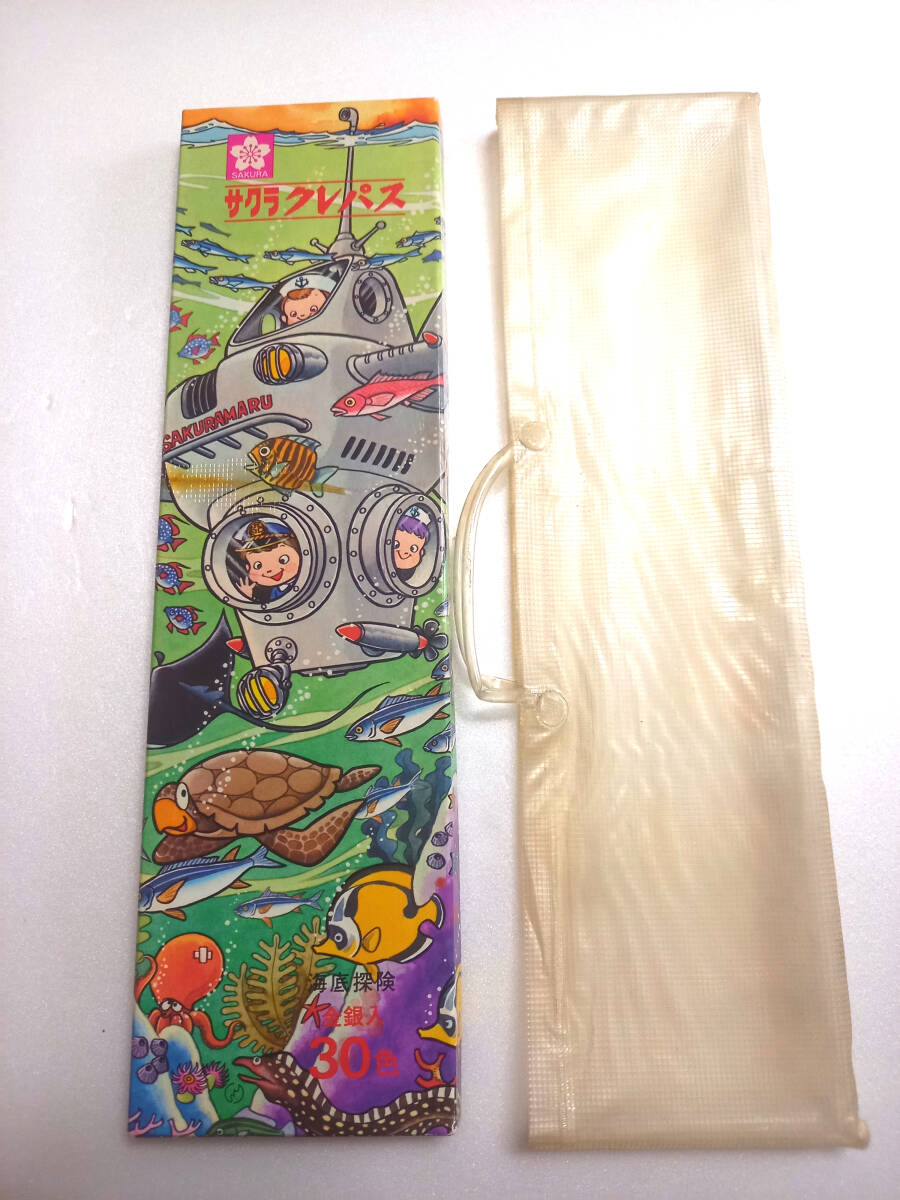 - 未使用 サクラクレパス 海底探検 30色 当時物 昭和レトロ デザイン イラスト かわいい 文房具 保管品