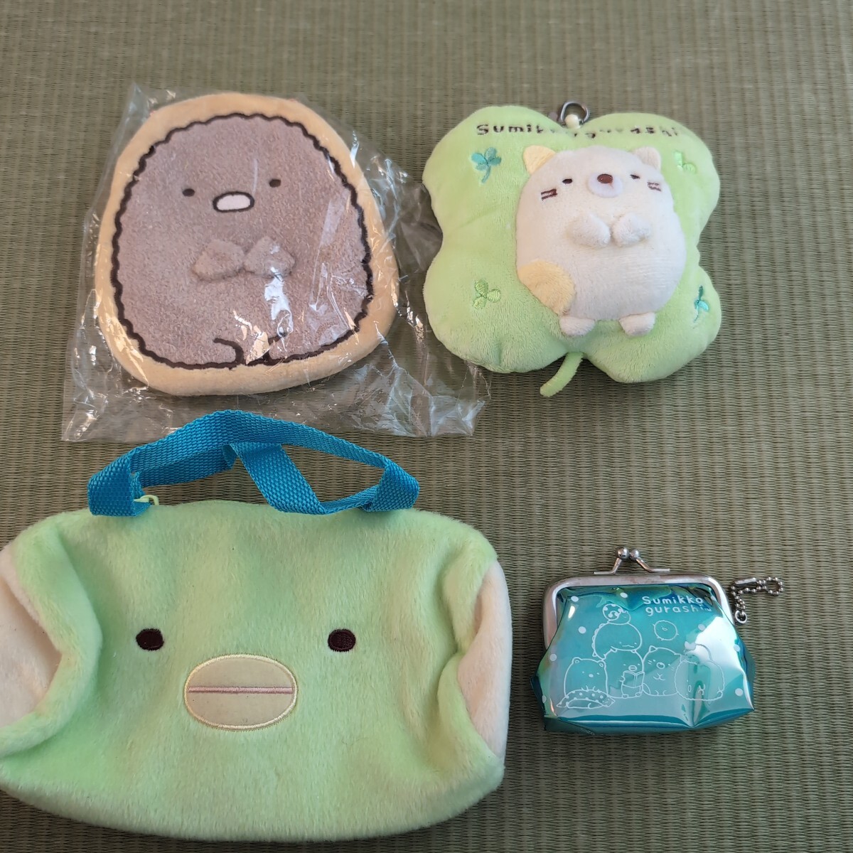 - すみっコぐらし★アップリケネックポーチ とんかつ&リールカードケース ねこ&ミニポーチ ぺんぎん? がま口コインケース