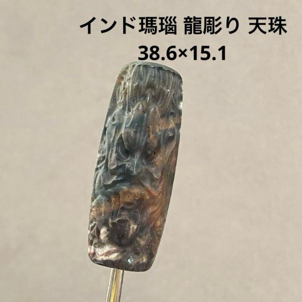 - D222 インド瑪瑙 龍彫り 天珠 38.6×15.1