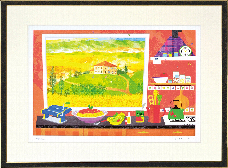 - ジークレー版画 額装絵画 はりたつお作 「イタリアの食卓」 三三