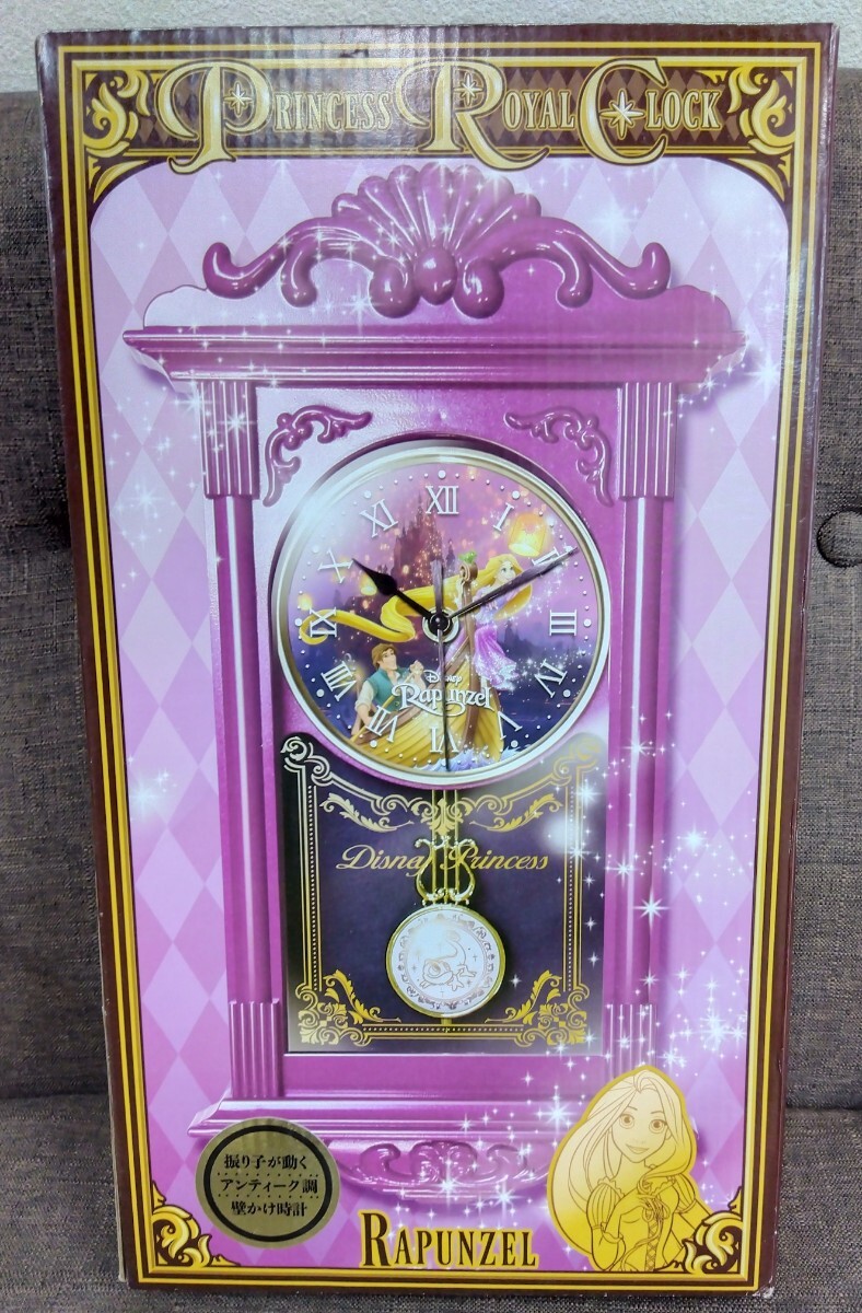 > 塔の上のラプンツェル Rapunzel 振り子が動くアンティーク調 壁掛け時計 パープル Disney PRINCESS 未使用品