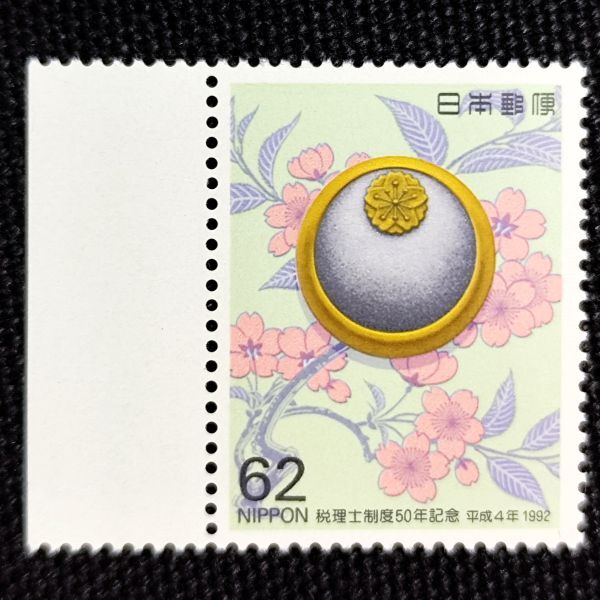 - [25060343]【税理士制度50年記念】単片「税理士の徽章と桜文様」62円 1992年発行 美品