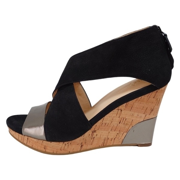 > コールハーン COLE HAAN サンダル 6 1/2B レザー 黒×シルバー レディース オープントゥ/ウェッジソール 靴