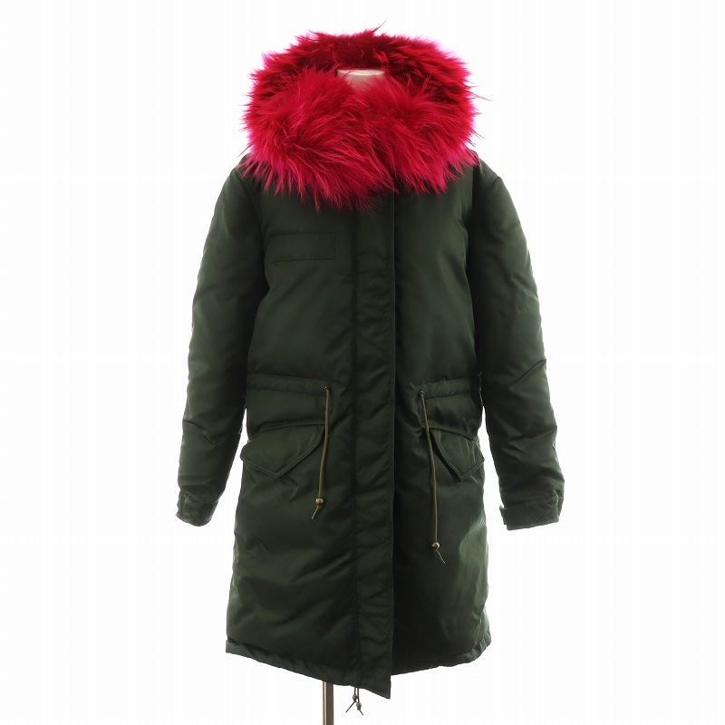 - ミスターアンドミセスイタリー MR&MRS ITALY モッズコート ロング丈 フード ラクーンファー アウター XXS カーキ ピンク