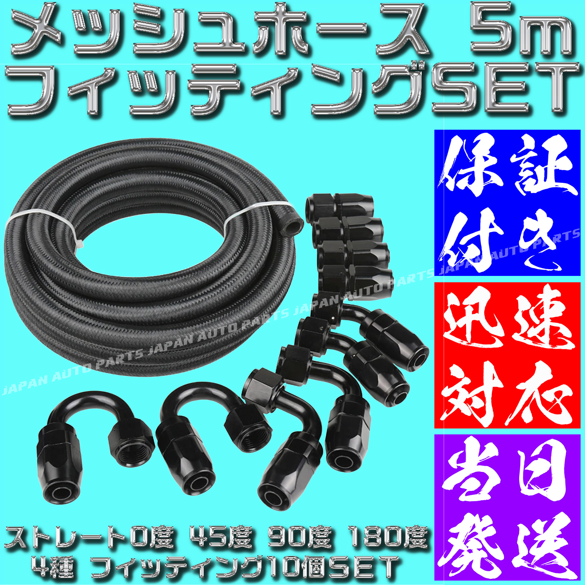> 【送料600円】【AN6】【黒&黒】5m オイルクーラー ナイロン メッシュホース フィッティング セット ホースエンド 0度 45度 90度 180度
