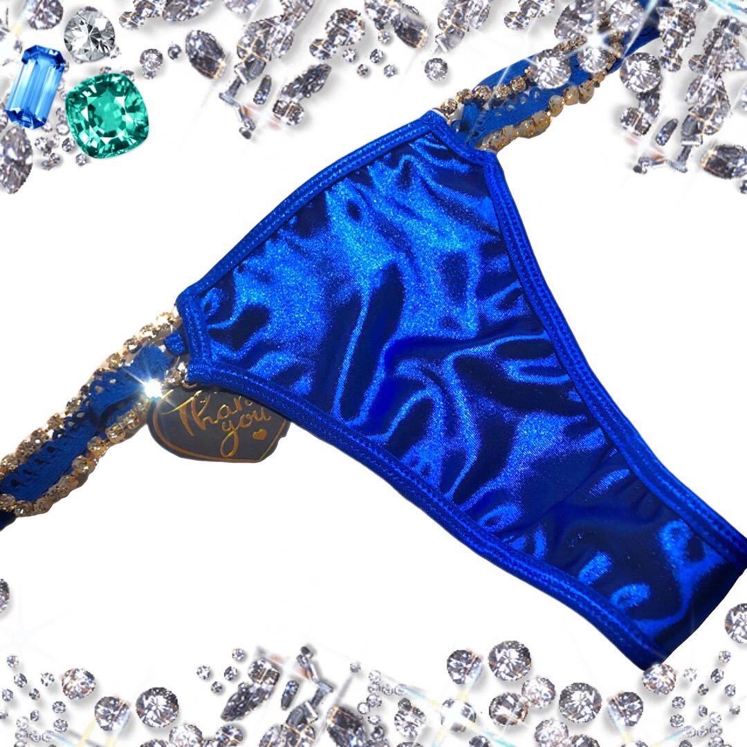 - Tバックショーツ サテン つるつる パンティ サテンショーツ 紐パン ストリングtバツク下着 MLサイズ サテンショーツ ブルー 青