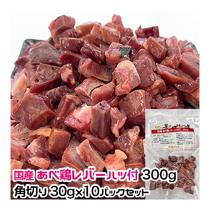> 犬用・猫用 国産 あべ鶏レバーハツ付 300g 角切り30g×10パック 冷凍真空パック【クール便発送】犬 猫 手作りごはん