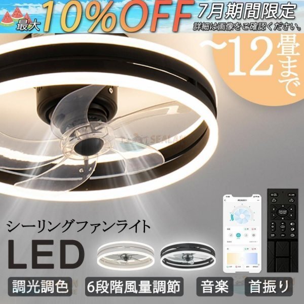 - 即納 シーリングファンライト LED 音楽 ファン付き照明 首振り 12畳 調光調色 APP対応 6段調節 静音 軽量 扇風機 省エネ シーリングファン