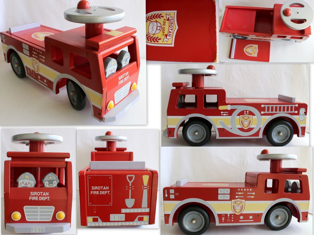 - 1354/ 中古・使用感あり/マザーガーデン 木製乗り物おもちゃ しろたん消防車 全長:55cm 幅:18cm 総重量:5.5kg