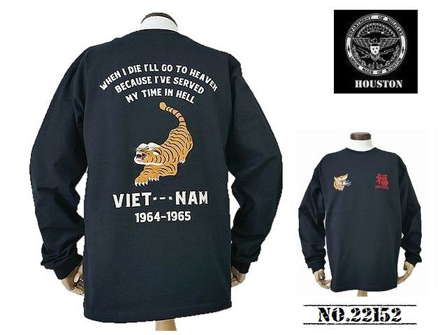 > 【送料無料 34%OFF】HOUSTON ヒューストン ベトジャン柄 発砲プリント 長袖Tシャツ 「TIGER」 NO.22152 BLACK_Mサイズ