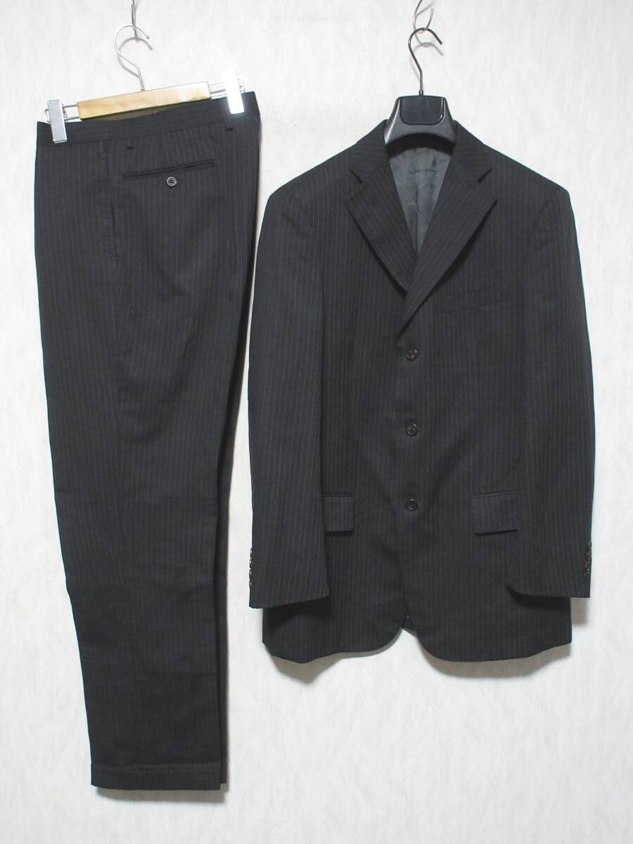 - J.PRESS ジェイプレス ストライプ ウール100% 3B 総裏 サイドベンツ シングルスーツ メンズ C98-W88T180 ブラック kn2450