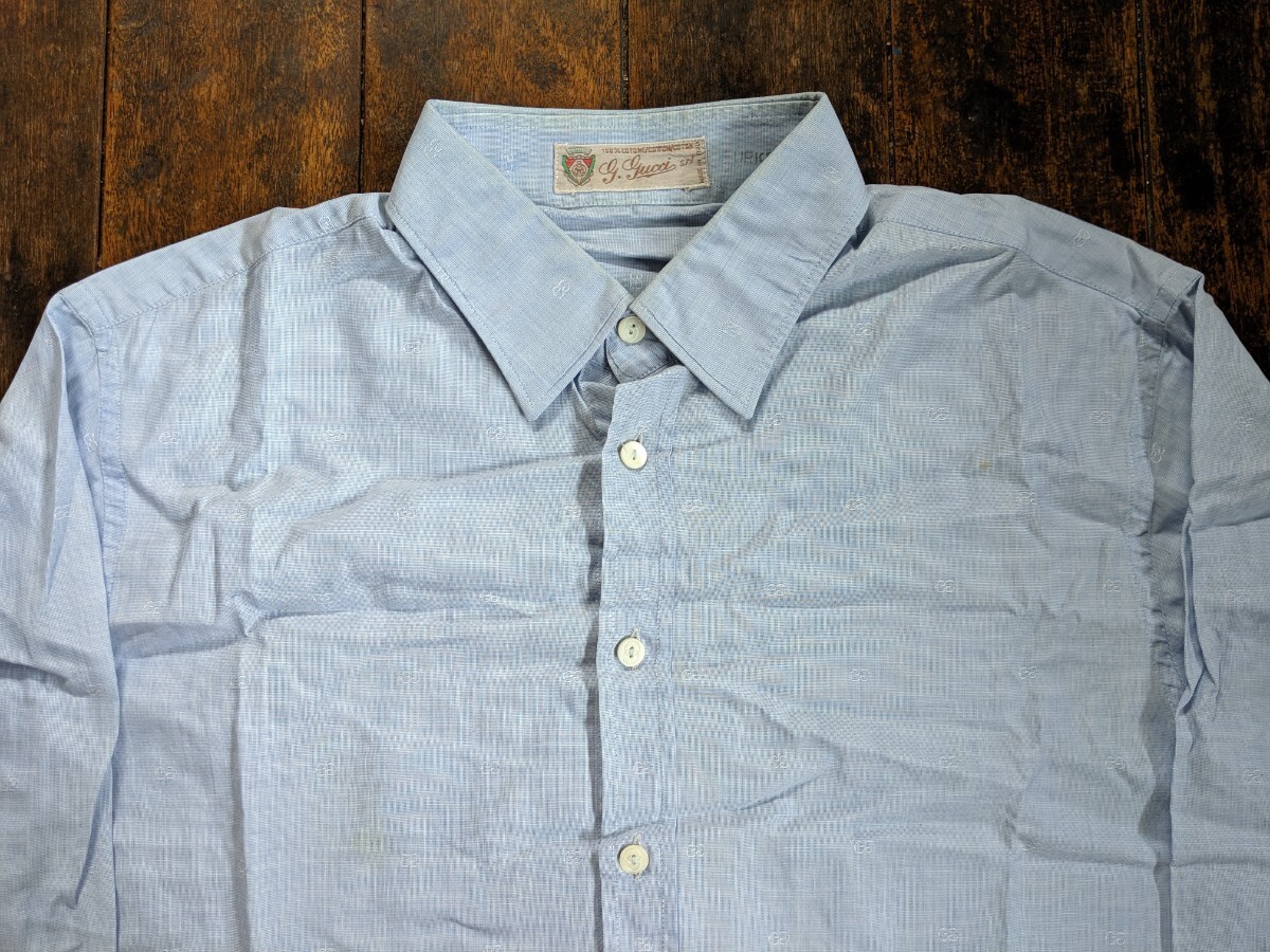 > レア ★ 60s オールド グッチ シャンブレー シャツ 織り 刻印 イタリア ビンテージ Old Gucci ワーク ドレス ジャケット エルメス ヴィトン