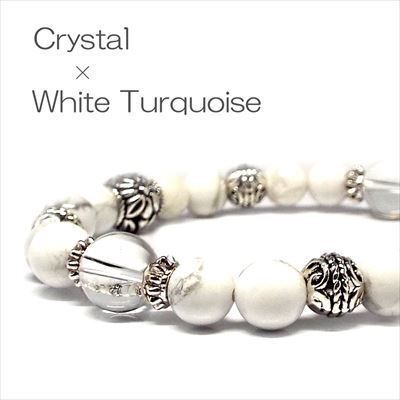 - パワーストーン 守護ブレスレット 水晶 ホワイトターコイズ アクセサリー 天然石 厄除け