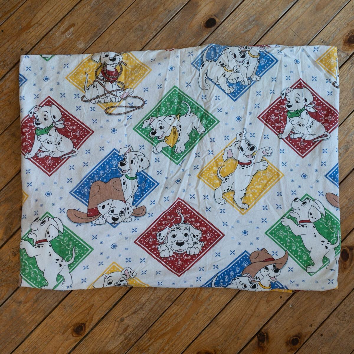 - USAヴィンテージ ベッドシーツ 101匹わんちゃん リメイク生地 バンダナ柄 ダルメシアン 犬 Disney 素材 ボックスシーツ アメリカ仕入 B2798