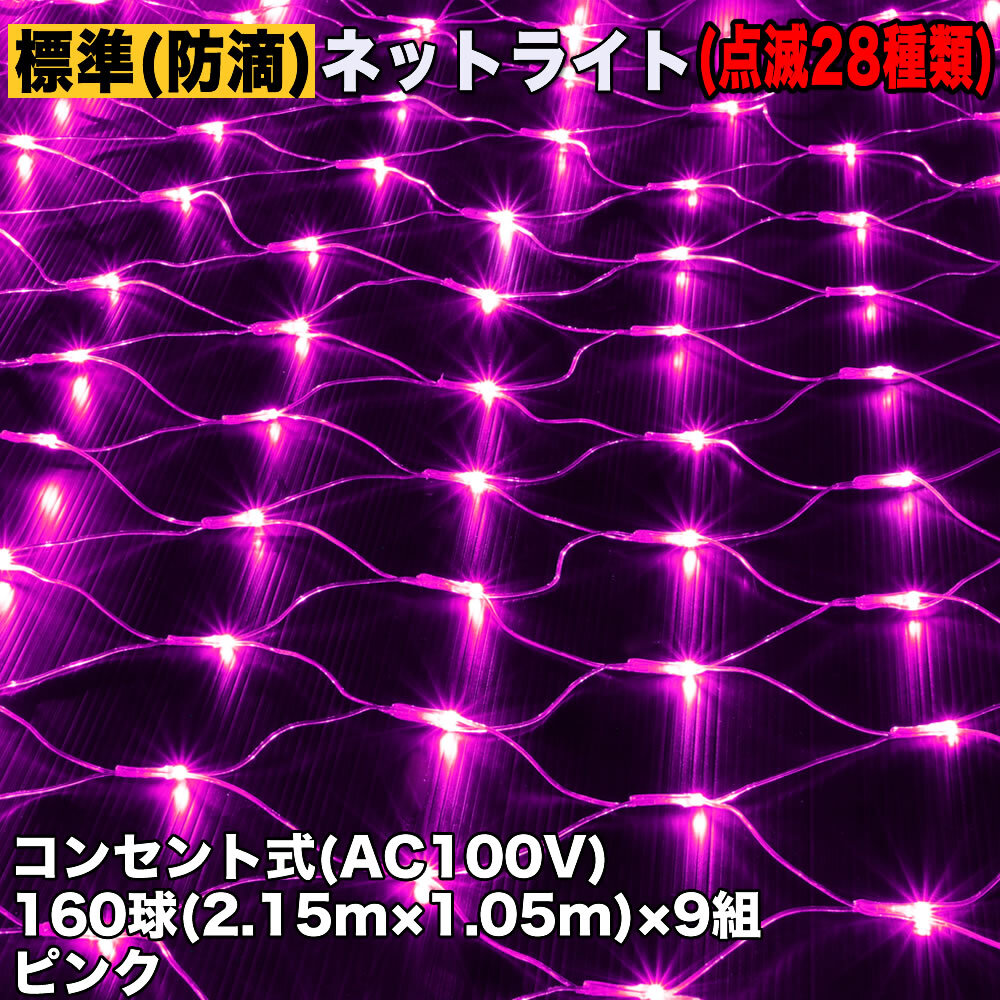 > クリスマス 防滴 イルミネーション ネット ライト 網状 電飾 LED 1440球 (160球×9組) ピンク 桃 28種点滅 Bコントローラセット