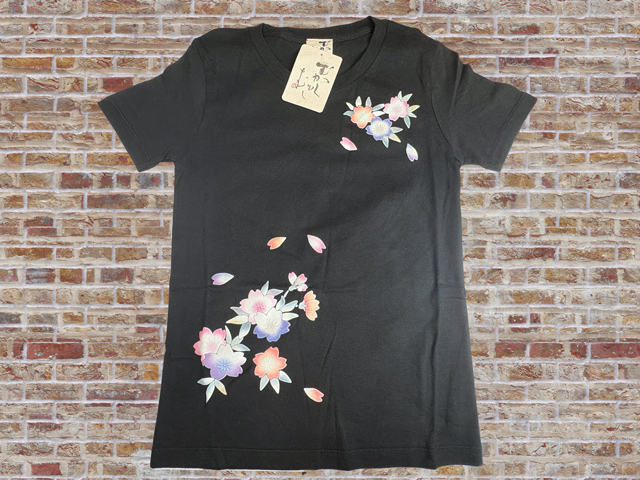 - 黒 Sサイズ むかしむかし レディース 半袖Tシャツ 和柄 花柄