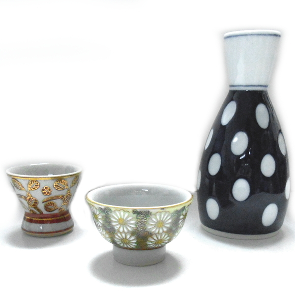 - 九谷焼★徳利 水玉文様 仙守 千山 盃 花詰文様 花文様 2種